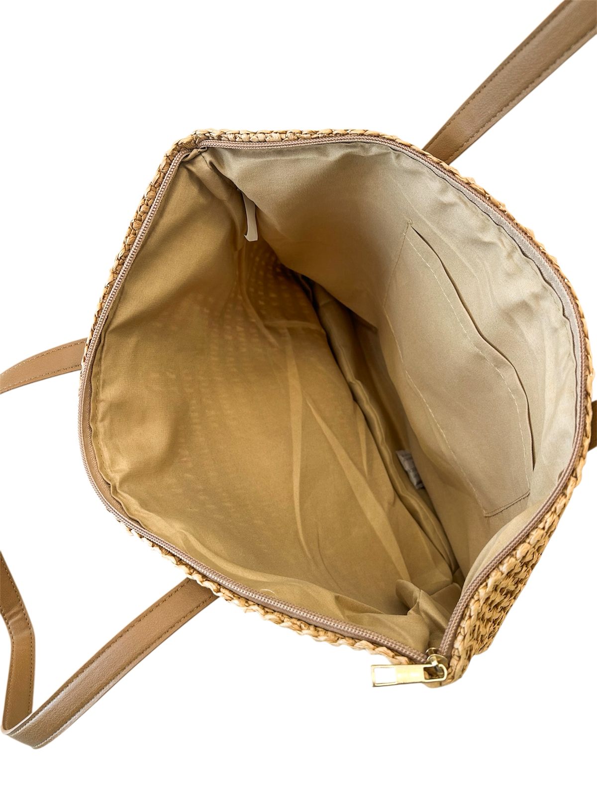 - Fechamento Seguro: Diferente de muitas bolsas de palha, esta possui um fechamento superior com zíper (visível na lateral), garantindo que seus pertences fiquem guardados com segurança.