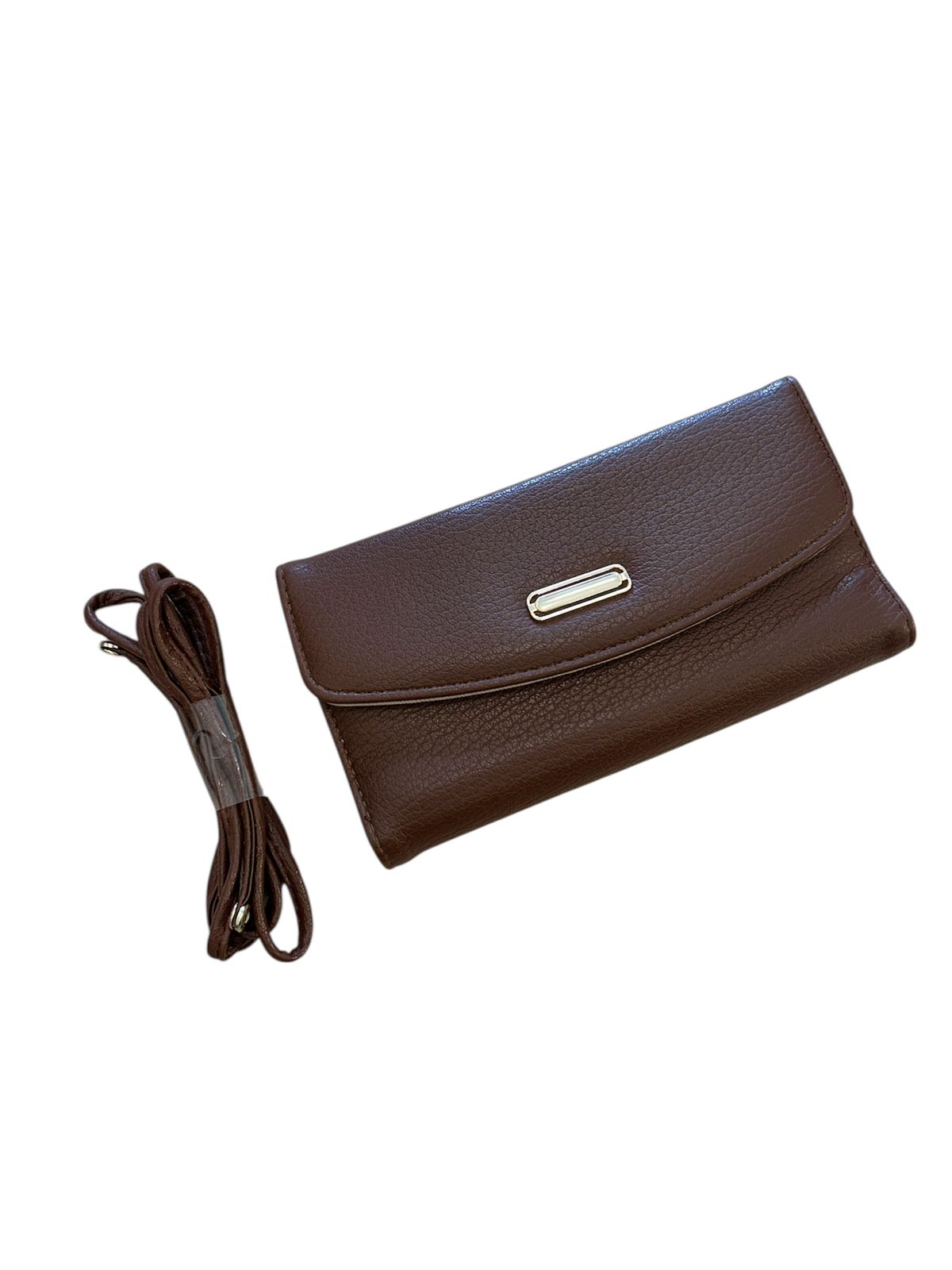 - Uso Versátil: Acompanha uma alça fina e longa na mesma cor café, permitindo que a carteira seja usada como uma prática mini bolsa a tiracolo.