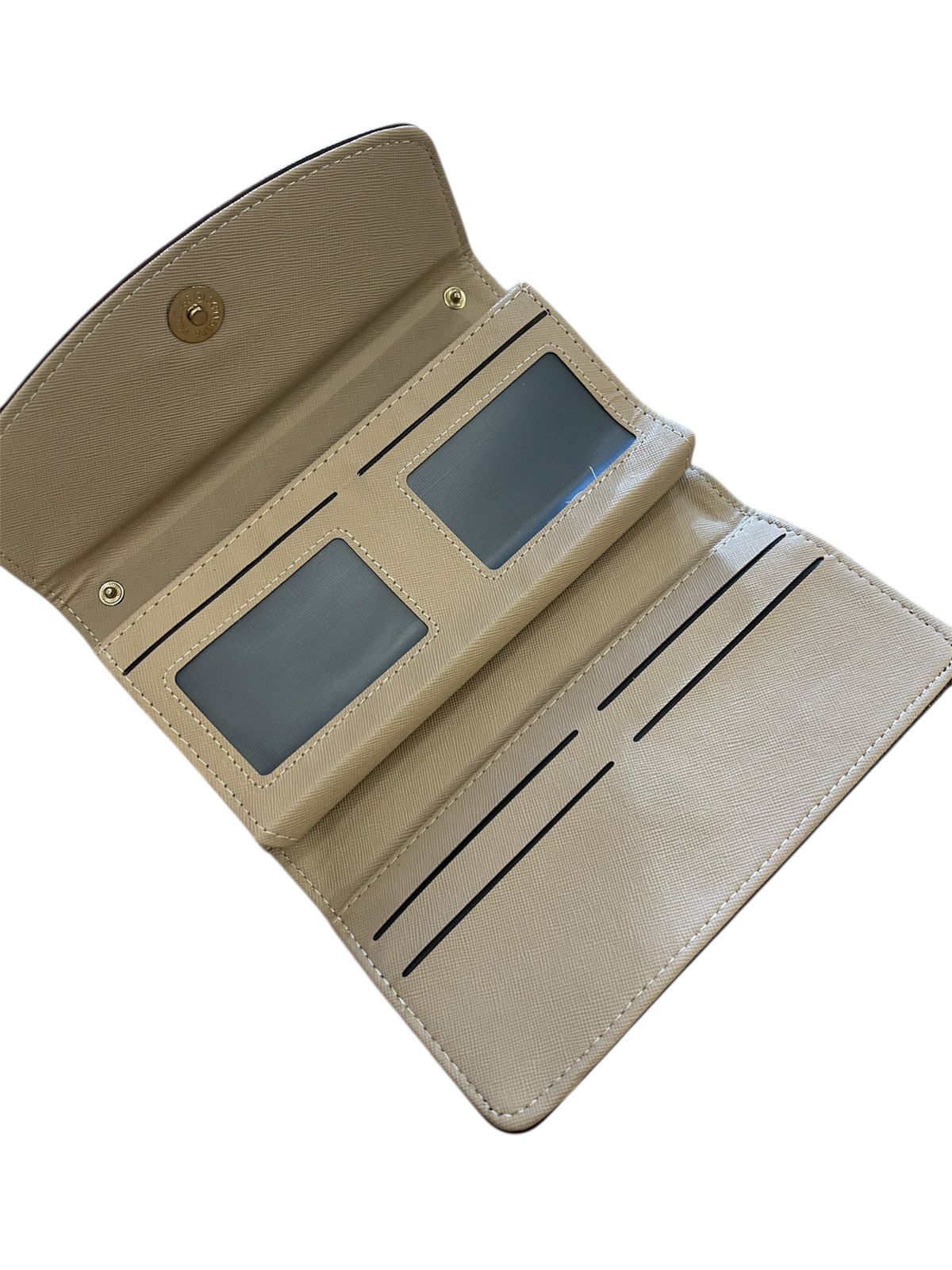 - Contraste Interno: O interior revela um contraste moderno em um tom bege claro, oferecendo um toque de leveza ao abrir a carteira.